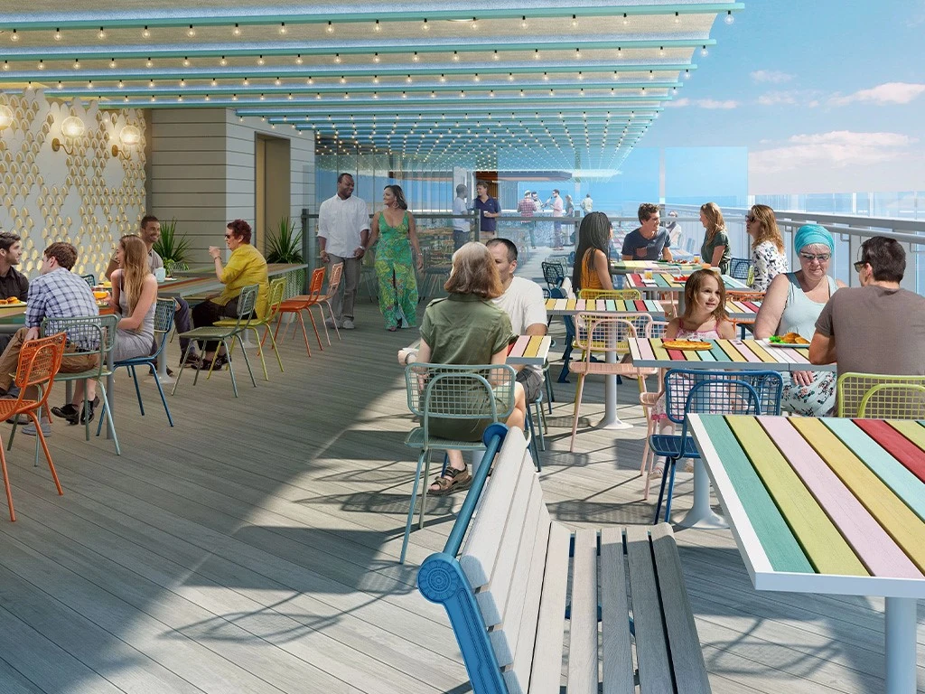 Beaches, boardwalks and piers were just a little of what inspired Carnival to create The Shores, this zone serves up just the right flavors and feels. For starters, Coastal Slice™ is the hotspot for fresh pizza that can only be topped… by delicious toppings. Marina Bar™ is an indoor/outdoor spot where the drinks are only part of the refreshment story — there’s also some great lounging to do! And if you catch yourself at Beach Buns™, who can blame you? It’s a fabulous way to enjoy delicious sandwiches made how you like, or even a just-got-grilled hot dog.